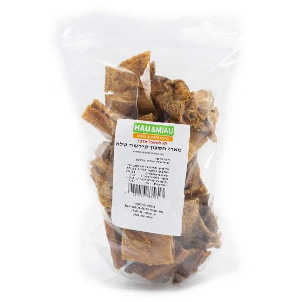 חטיף קירשה בקר, מיובש תוצרת ישראל! מושלם לאילוף או כפינוק כצ’ופר בריא ואיכותי מרכיבים מוגבלים וטבעיים בלבד. מפוצץ ערכים התזונתיים יחד עם טעם טרי שכלבים לא יכולים לעמוד בפניו. 250 גרם אריזת חסכון גדולה