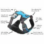 - רתמה מרופדת העשויה מחומרים רכים ואיכותיים לשמירה על פרוות ועור הכלב