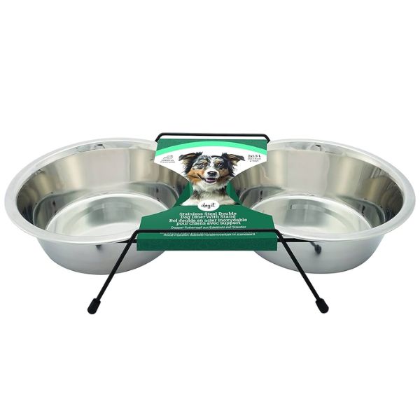 קערות מזון ומים מנירוסטה איכותית, מחוברות לסטנד מתכת קבוע לנוחות ויציבות מקסימלית. מתאימות במיוחד לכלבים בינוניים וגדולים.